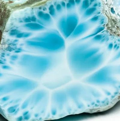 Larimar is a rare variety of the mineral pectolite, found exclusively in the Dominican Republic. This beautiful gemstone is known for its striking oceanic hues, ranging from pale sky blue to deep sea green, often with white cloud-like patterns resembling sunlight reflecting off water.
