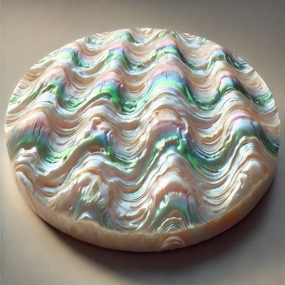 Mother of Pearl, also called nacre, is a composite material secreted by mollusks to line the inner shell and create pearls. It is primarily composed of aragonite (a form of calcium carbonate) and a natural polymer called conchiolin. This iridescent substance protects the mollusk and gives pearls their characteristic shine.