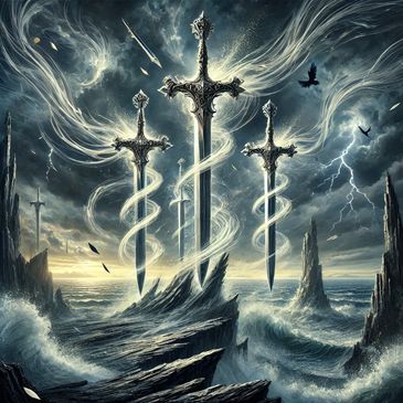 The Suit of Swords is governed by the element of Air and delves into the realm of thoughts, intellect, and communication. Swords are often linked to our mental clarity and the challenges we face, such as conflict, decision-making, and the power of our words. This suit can bring attention to internal or external struggles, highlighting areas where we need to cut through illusions or face difficult truths. Swords remind us that our mind is both a weapon and a tool, capable of creating both harmony and discord.